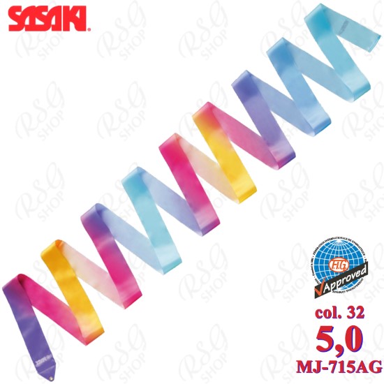 Ein professionelles Band für Rhythmische Sportgymnastik. Es ist nach der Forderung von FIG zertifiziert. Das Modell MJ-715AG (ART Gradation) - mehrfarbige Bänder mit abwechselnden Farbtönen und fliessenden Übergängen. Das Band ist in Japan mit Ausnutzung der Webertechnik Kohakuori hergestellt worden. Das Band unterliegt nahezu keinen statischen Spannungen sowie Verwicklungen, wodurch die dynamische Leistung erhöht wird.